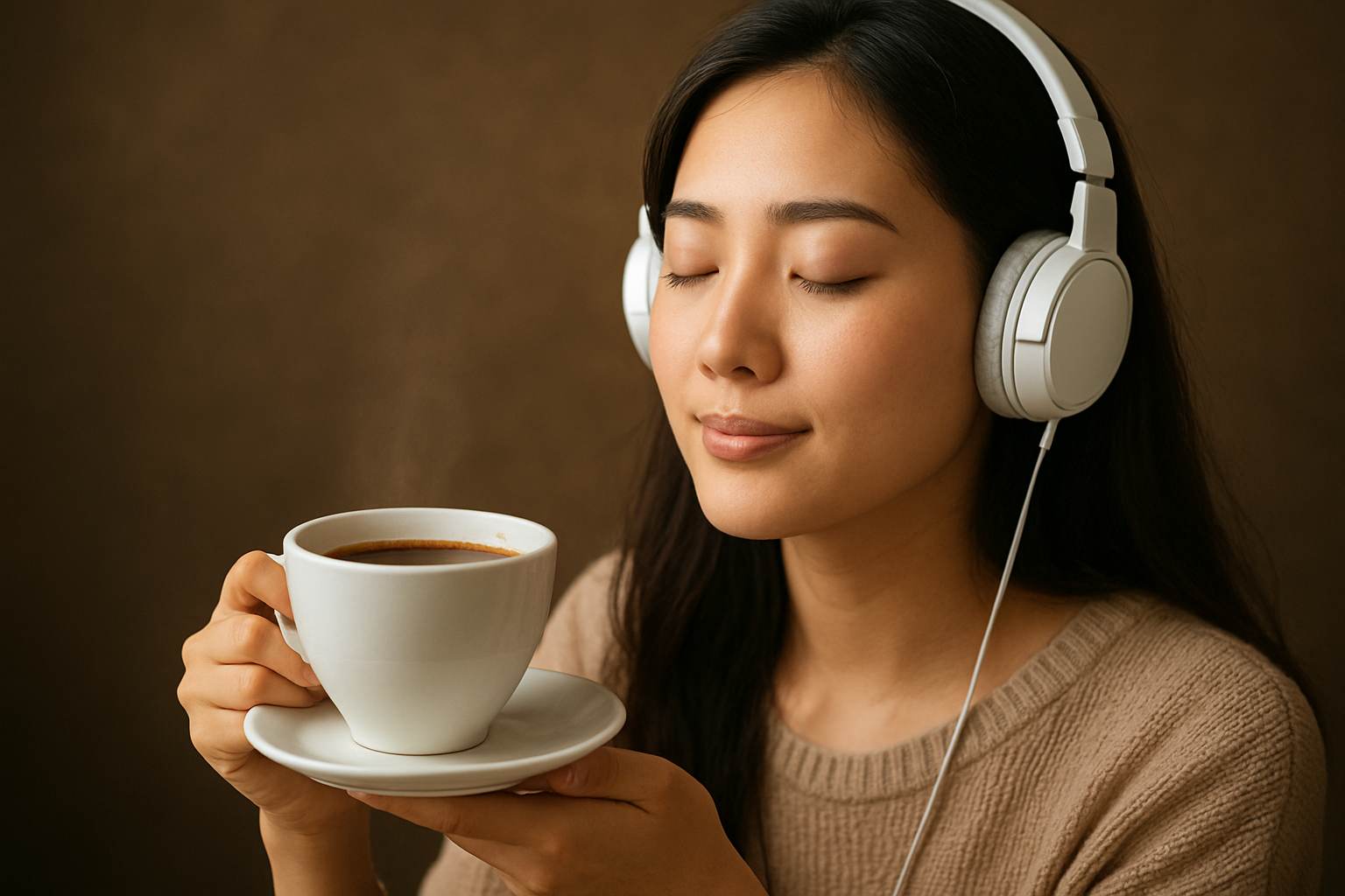 嗅覺的咖啡香、視覺的空間設計、觸覺的舒適座椅、味覺的層次風味,以及最容易觸動情緒的──聽覺。