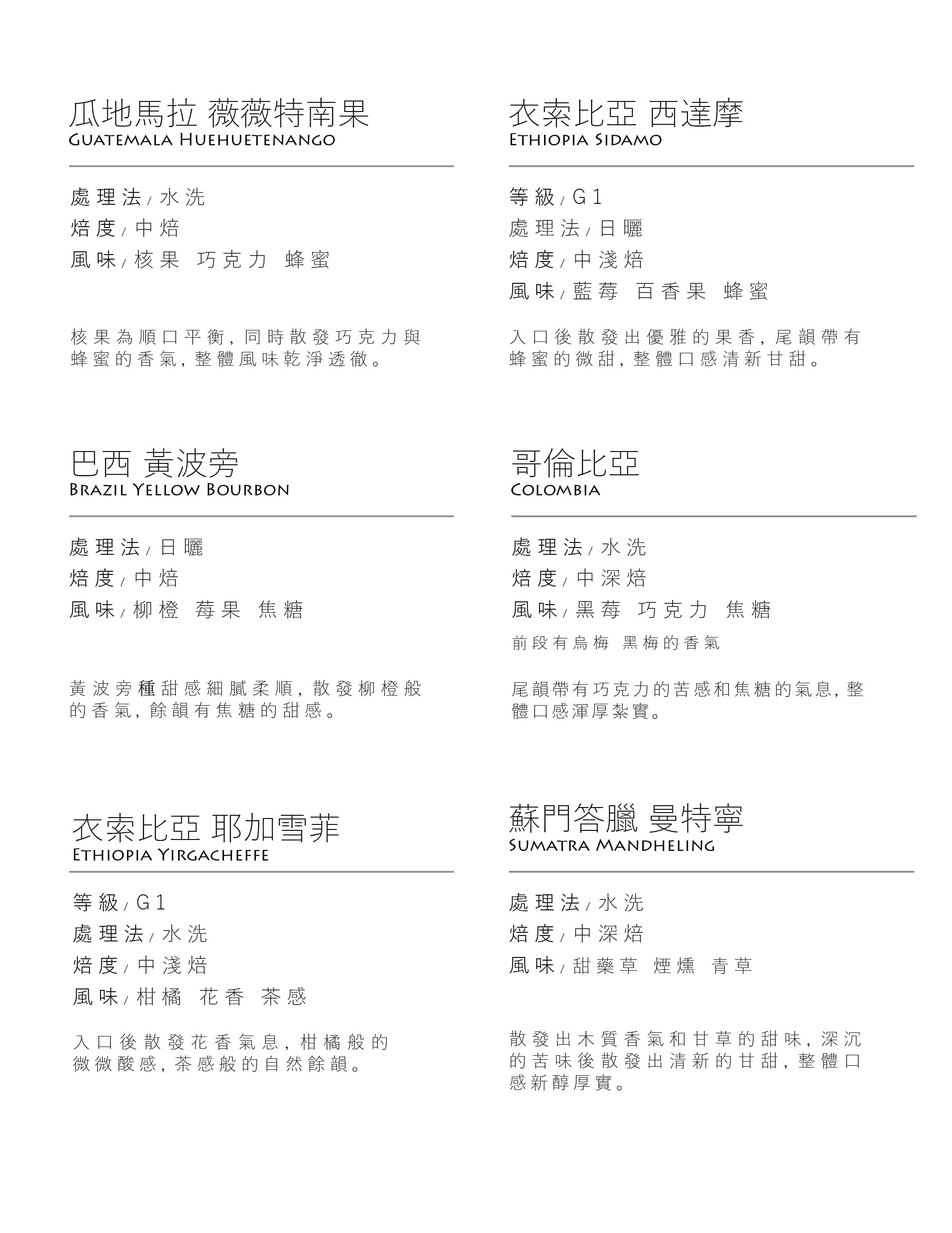 針對不同產區調整烘焙手法,讓你體驗最獨特的風味。